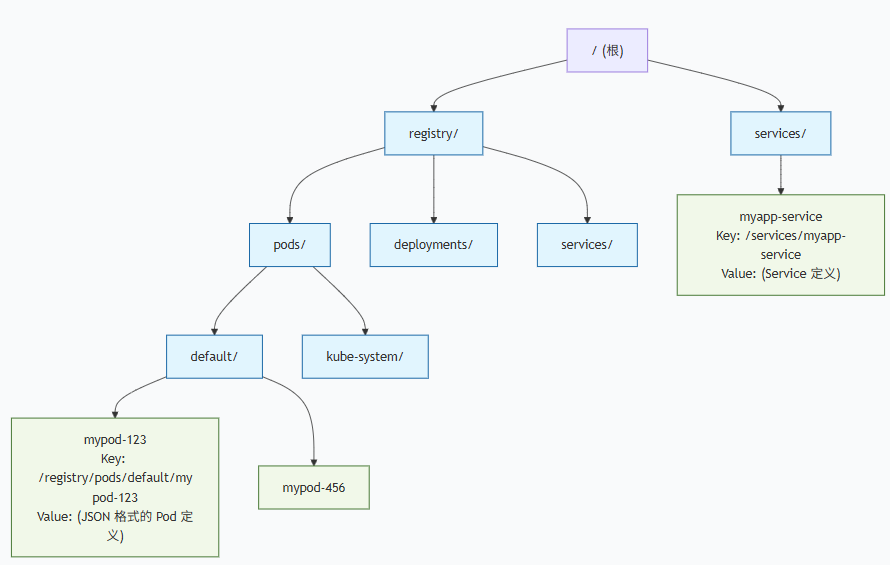 我们前面在介绍ZooKeeper的时候,介绍他的是树形目录结构,而我们的今天的Etcd也是他一样,也是采用树形目录结构,所以的增删改查也基于这个树形目录。