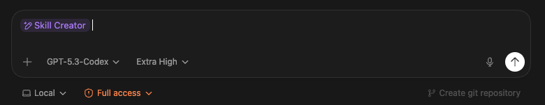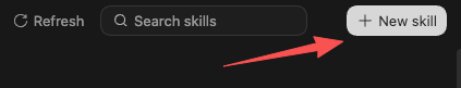 同时,Codex自带了skill Creator,也就是说,在codex上构建一个skills,体验跟扣子几乎一样,你只需要点击右上角的New Skill。
