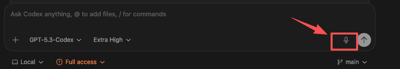Codex右下角有个麦克风,我现在经常就是打开麦克风,然后用嘴说。