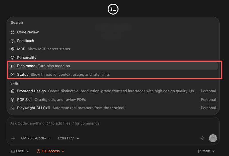 先再codex上,打开Plan模式,用嘴描述我的需求,如果涉及到前端页面或者服务器,在需求描述时,会强调使用前端设计skill也就是Frontend Design来设计,再用我自己的服务器管理skill来进行介入管理。