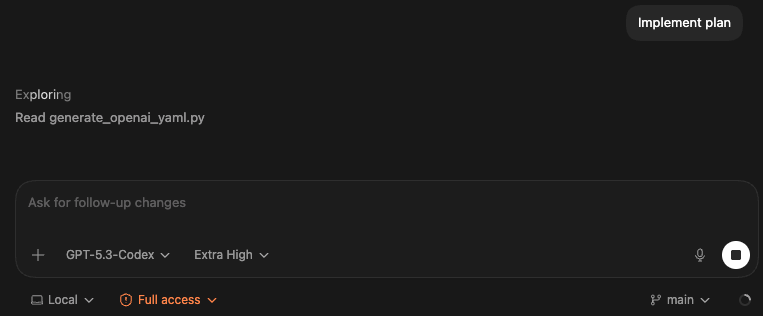 同时,codex也会询问你,是否实施此计划,是和否,一般来说,你选是就行了。