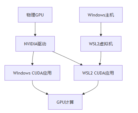 WSL2通过虚拟PCIe设备将Windows主机的GPU暴露给Linux子系统,实现了GPU的直接访问。这种架构相比WSL1有了显著改进,能够提供接近原生的GPU性能。