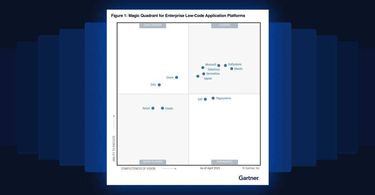 比如Gartner,全球知名的研究和咨询机构,它每年会发布“企业级低代码应用平台魔力象限”。常年位于领先位置的,这家公司虽说也有可能出现我上面所说的情况,但总体内容还是比较权威的,因为人家说的出来依据是什么,比如像它常年介绍材料中出现的厂商名字:
