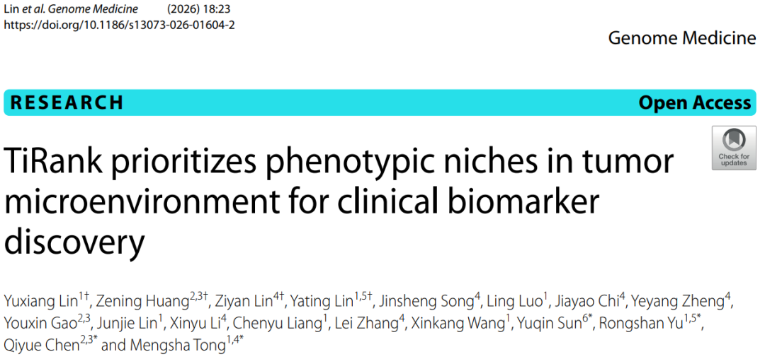 Lin, Y., Huang, Z., Lin, Z. et al. TiRank prioritizes phenotypic niches in tumor microenvironment for clinical biomarker discovery. Genome Med 18, 23 (2026).