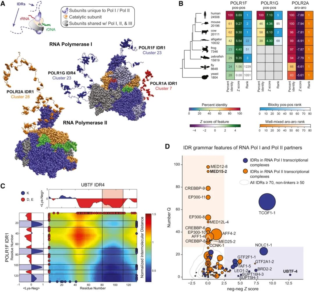 图6. RNA聚合酶I和II具有特殊且截然不同的IDR分子语法