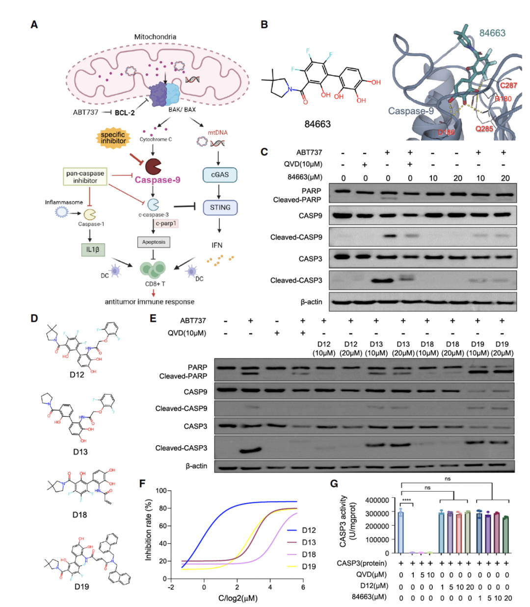在 caspase-9 抑制剂设计这一应用场景中,作者将模型生成的候选分子进行了合成与实验验证。部分分子在细胞水平和酶学实验中显示出显著抑制效果,并且结合位点预测通过突变实验得到支持。这意味着模型不仅在指标上表现优秀,而且能够产出具有真实生物活性的候选分子。