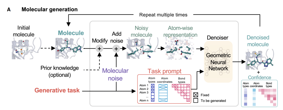 比如,在3D分子生成或基于结构的药物设计中,分子的原子类型、原子坐标和化学键类型都需要生成;