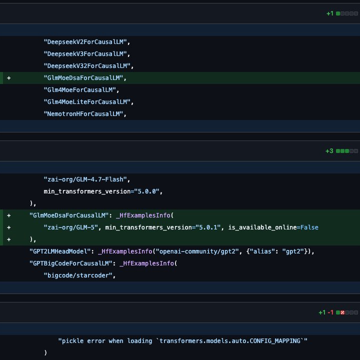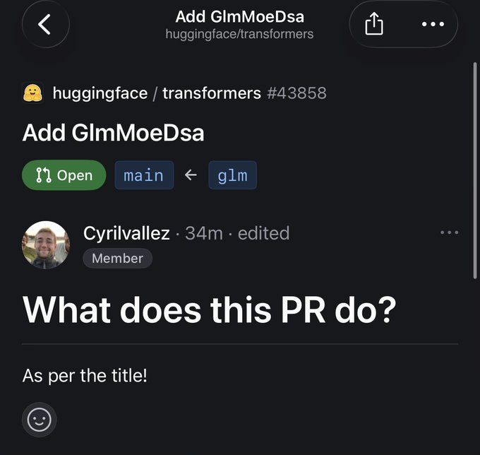 更值得关注的是,「GLM MoE DSA」 即将登陆 transformers 官方库 👀