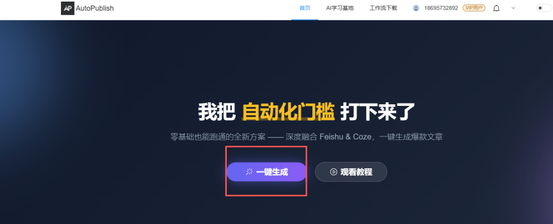 回到工具站首页,点击 “一键生成”。后台就开始干活了。