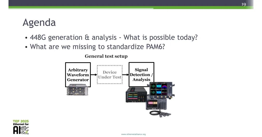Keysight展示448G信号生成与分析方案,指出PAM6尚需统一编码和测试模式;