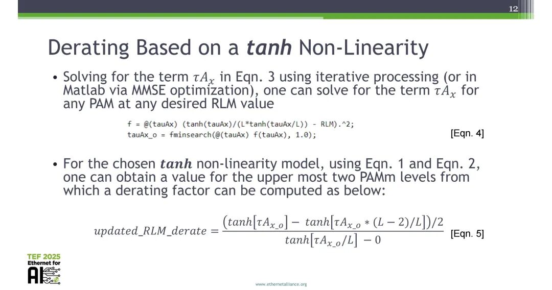 通过最小均方误差(MMSE)迭代求解得到τ Ax的最优解,代入通用最小可接受线性度公式,即可得到任意PAM调制、任意RLM数值下的精准降额因子:
