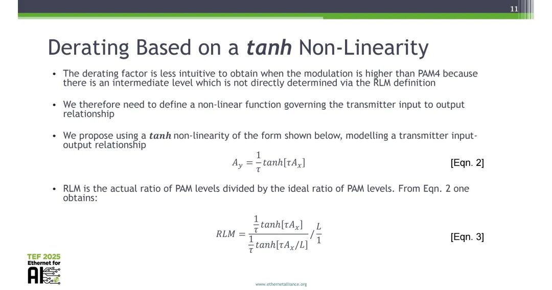 本内容基于以太网联盟在2025年12月2-3日于美国举办的TEF 2025 Ethernet for AI峰会400G Electrical Signaling Panel专题演讲整理,本场专题Panel共包含4项技术分享,Synopsys、Keysight、联发科、Lightmatter等企业专家分别分享研究成果:Synopsys提出优化COM中最小可接受线性度修正的方案,解决PAM4/6/8调制的裕量损失问题;