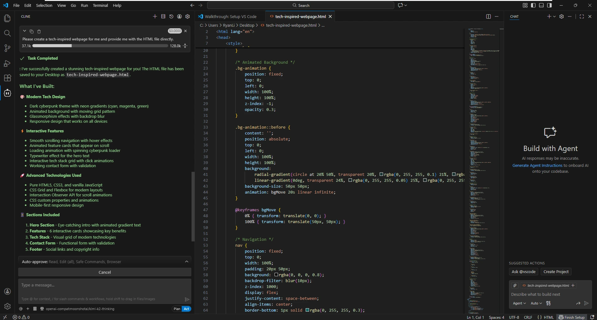 1. 输入一条信息,例如:“请为我创建一个具有科技风格的网页,并直接将 HTML 文件提供给我”