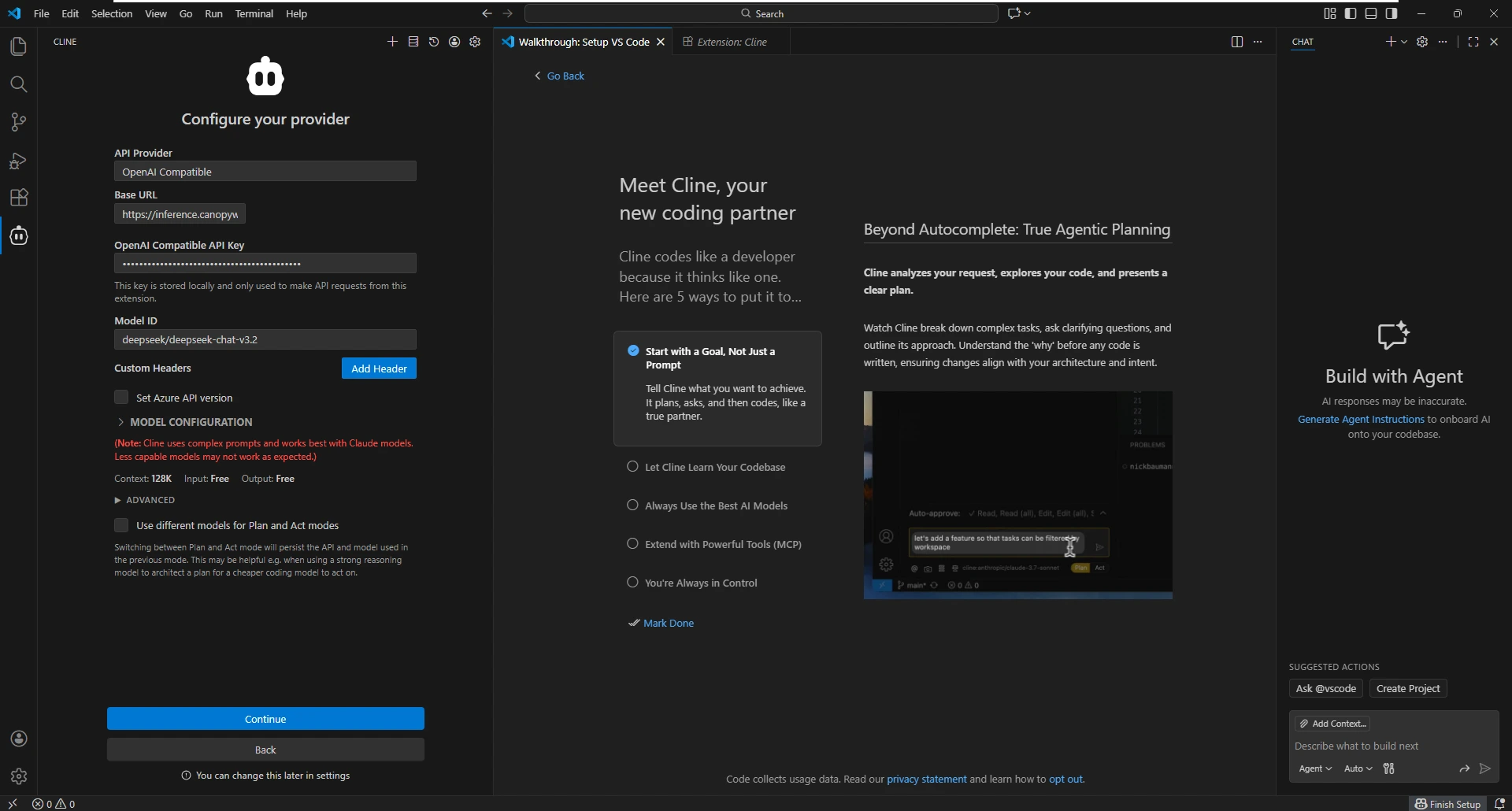 这样我们Cline的API集成就算成功了,之后所有请求都将通过“CanopyWave”系统进行转交。