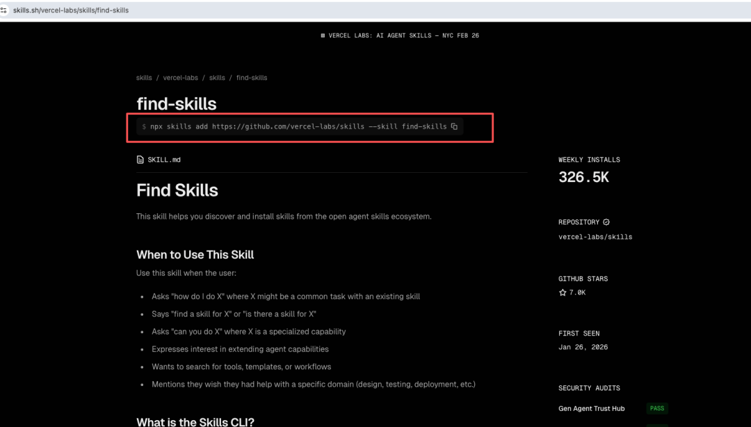 而“先装 find-skills,再按目标扩展”的方式更稳: