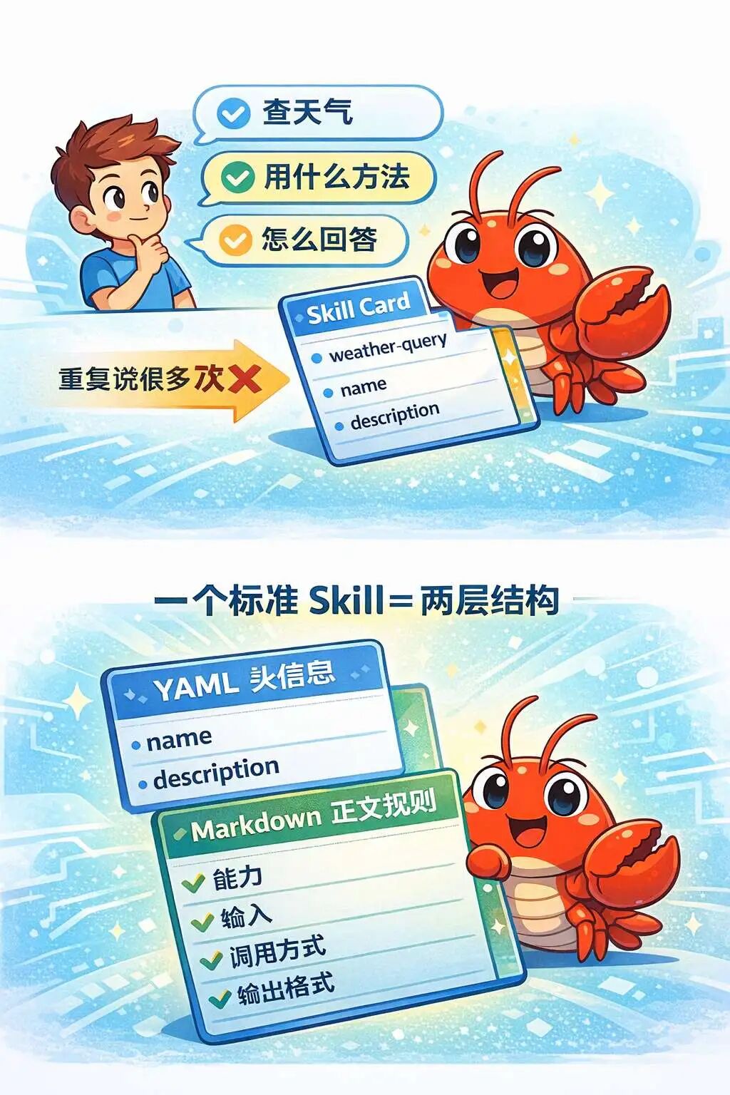 你把这两层写清楚,Skill 才是真的“可用 + 可维护”。