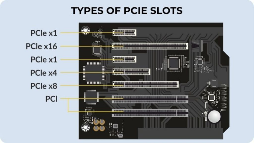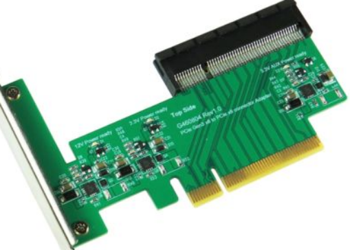 PCIe实际的接口长什么样呢?最常见的就是这种长方形的插槽配以金手指卡了。