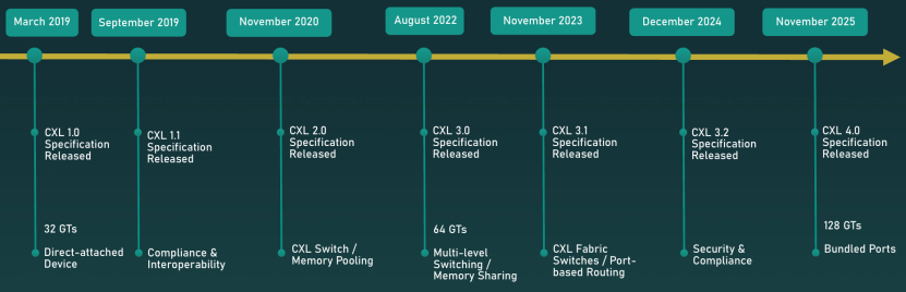 该标准的首个版本于2019 年发布,目前已更新至第四代。中途还收编了Gen-Z和OpenCAPI。