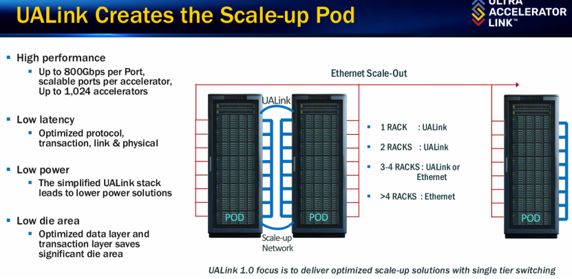 2024 年 10 月,AMD和Intel、Google、微软等 9 家企业发起成立 UALink 联盟(现在成员数已经增加到了60多个,阿里云、苹果等都在内),该组织于2025年4 月正式对外发布UALink 1.0 规范。