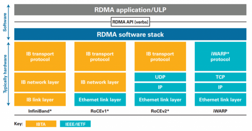 IB是为高性能计算(HPC)和低延迟而生的专用网络技术,而RoCE则是将以太网的通用性和IB的高性能结合的技术方案。想要知道详细内容,可以参考本公众号的前期文章《RDMA技术解析》