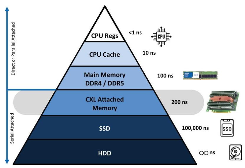 CXL 为CPU连接高速、低延迟内存提供了全新的接口方案。原本用于连接存储或其他外设的PCIe 接口,现在可以接入 CXL Type3 内存设备。所以CXL 技术让PCIe接口具备了支持DRAM 设备的能力,从而大幅提升内存扩展潜力。
