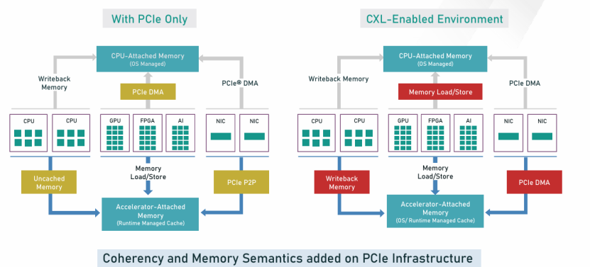 它在PCIe的基础上,增加了CXL.cache协议。