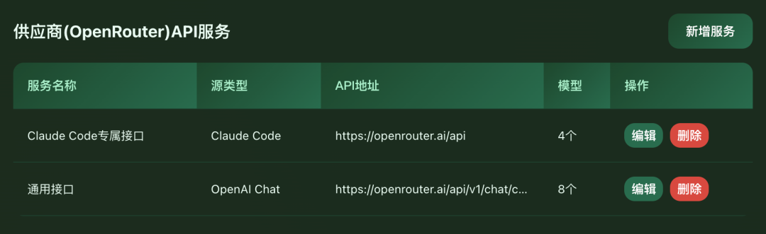 完成之后,你可以在界面右侧看到有2个API服务已经添加好了。