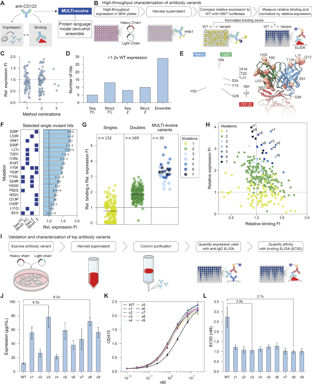 图5:基于MULTI-evolve的多目标抗体设计。