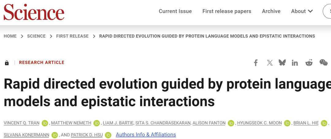 Vincent Q. Tran et al. ,Rapid directed evolution guided by protein language models and epistatic interactions.Science0,eaea1820