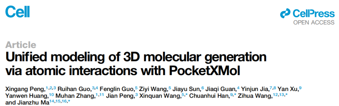 参考文献 :Xingang Peng, Ruihan Guo, Fenglin Guo, Ziyi Wang, Jiayu Sun, Jiaqi Guan, Yinjun Jia, Yan Xu, Yanwen Huang, Muhan Zhang, Jian Peng, Xinquan Wang, Chuanhui Han, Zihua Wang, Jianzhu Ma,Unified modeling of 3D molecular generation via atomic interactions with PocketXMol, Cell, 2026, ISSN 0092-8674,