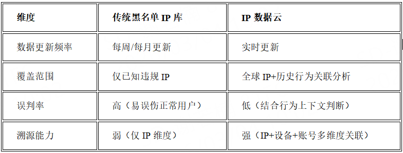 精准打击养号黑产,需从“静态封禁”转向“动态风险评估”,IP数据云的核心价值在于: