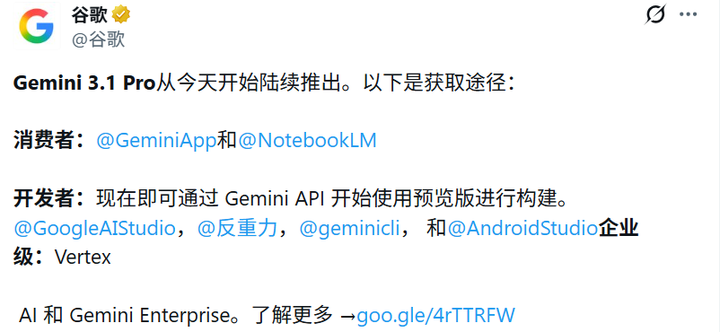 Gemini 3.1 Pro你用上没?谷歌说推理能力比Gemini 3 Pro提升了一倍以上,有没有那么厉害?本文将全面介绍Gemini 3.1 Pro的核心能力以开发者如何调用Gemini 3.1 Pro API,普通用户如何快速使用。