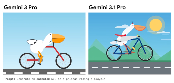 只需一句简短的文字描述,Gemini 3.1 Pro能根据文本指令为网站生成CSS/JavaScript/SVG 代码形式的动画 SVG 。以前需要以视频或 GIF 形式呈现的动画,现在可以使用 3.1 Pro直接以代码形式生成,开发人员可以轻松调整细节也可以直接应用。这些矢量动画无限缩放依然锐利无比,文件体积极小,远轻于传统视频或 GIF,完美适合网页嵌入。
