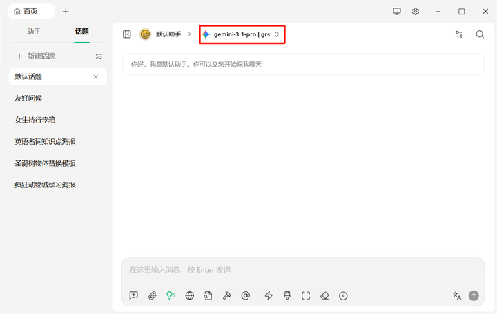 配置完成后,你就可以用Cherry Studio使用Gemini 3.1 pro,如果你有批量生图的需求Cherry Studio就不适合你,每次都需要等待对话结束才可以继续提问,你可以用开源免费批量生图工具。