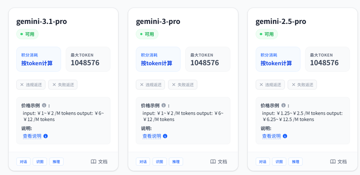 虽然Gemini 3.1 Pro的API定价与上代3.0 Pro持平(输入2美元/M tokens,输出12美元/M tokens),但这个价位对个人用户和企业来说仍不算低。市面上的第三方API往往价格虚高,存在中间商赚差价。其实你可以直接调用Gemini的源头API——GrsAi(https://grsai.ai,需魔法;com改AI可国内直连),能以比官方更低的价格调用Gemini-3.1-Pro、Nano Banana Pro(绘图)等模型。