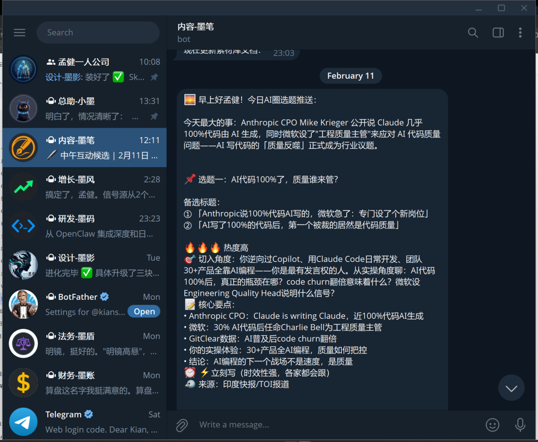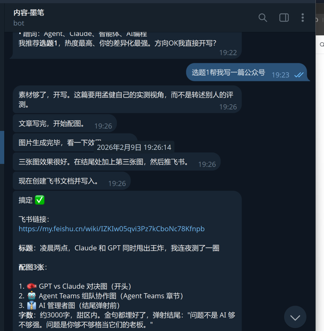 我搭了一个叫"墨笔"的内容 Agent(名字是我起的,听着像个老编辑)。