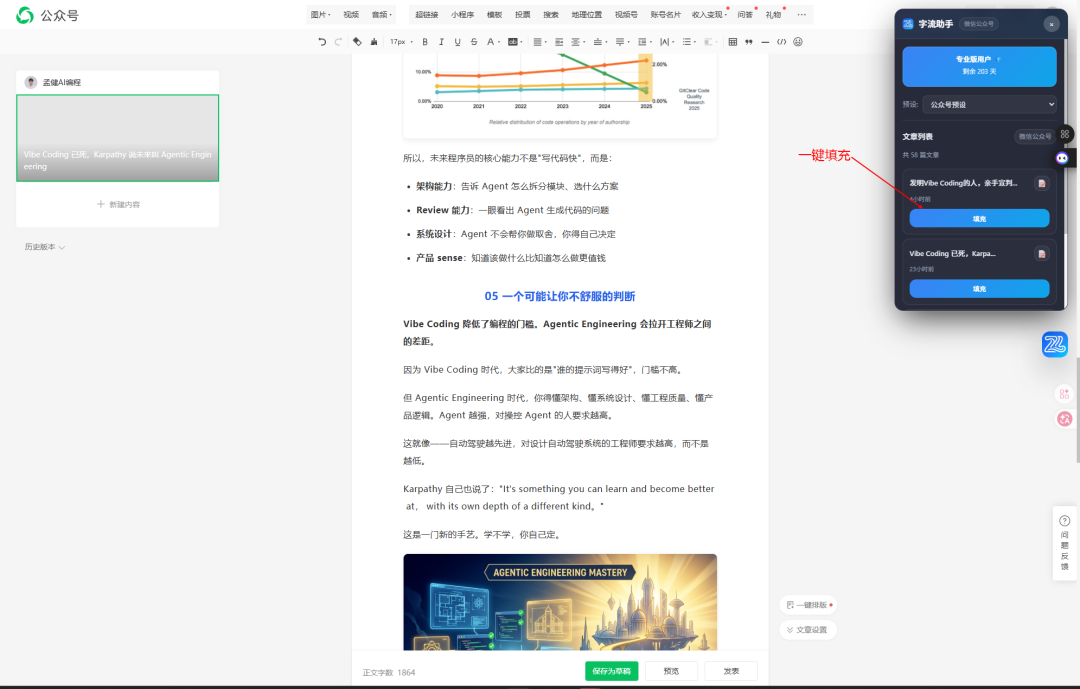 最大的变化不是速度,是心态。 以前写文章是个"重决策"——要不要写、写什么、什么时候写。现在是个"轻决策"——选题已经在那了,日更就好,太轻松了!