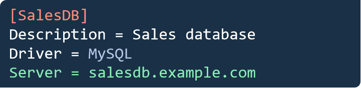 db.odbc.get[sales,,"Driver=/usr/lib/libmyodbc5.so;Server=salesdb.example.com;Database=sales"]