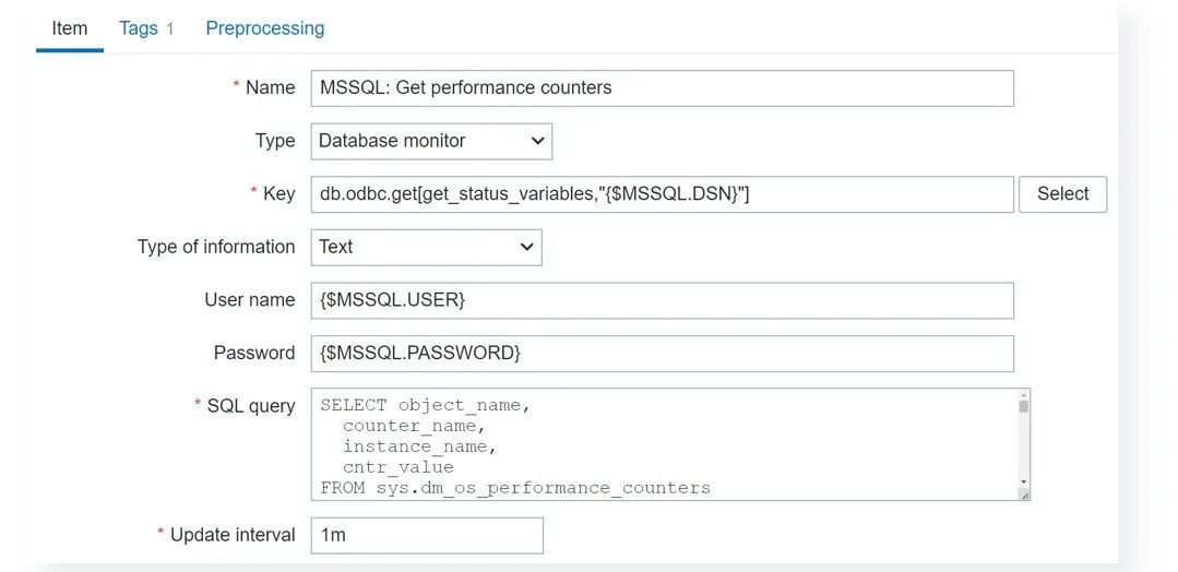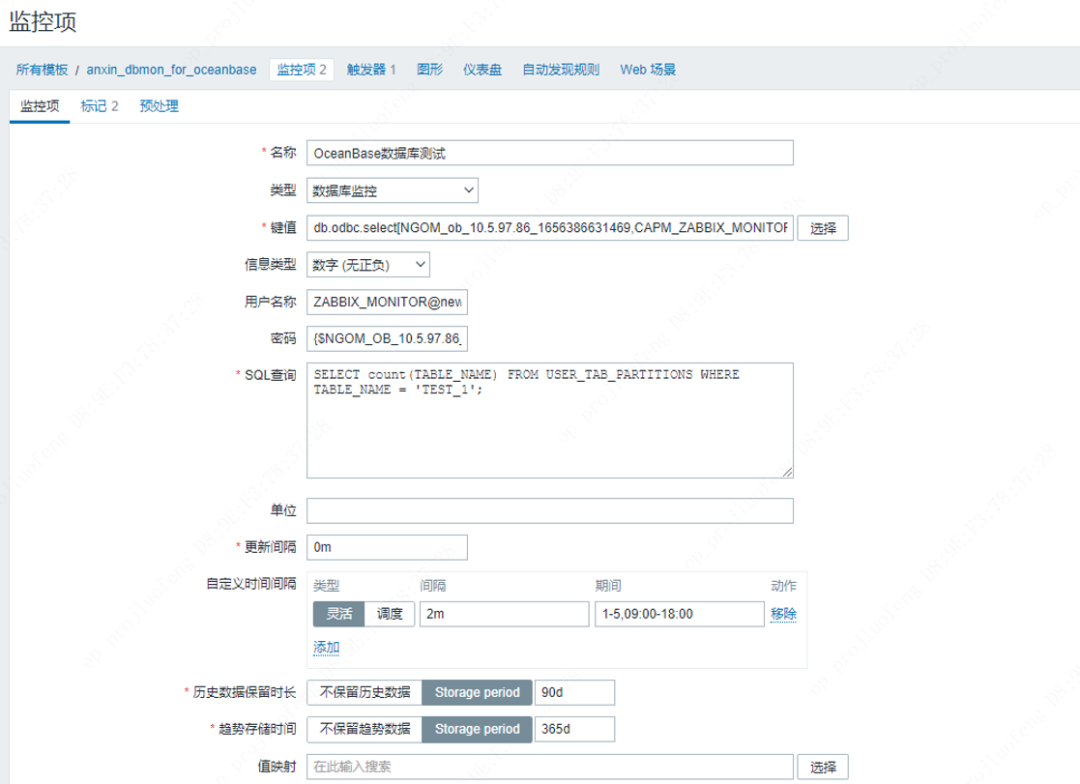 ODBC 监控通过数据库监控项(database monitor item)实现: