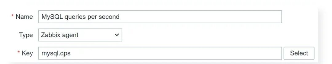 UserParameter=mysql.qps,mysqladmin status | cut -f9 -d":"