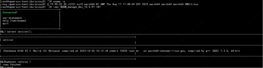 Vastbase G100 V2.2 (Build 10) Release) compiled at 2023-10-20 10:12:18 commit 15020 last mr on aarch64-unknown-linux-gnu