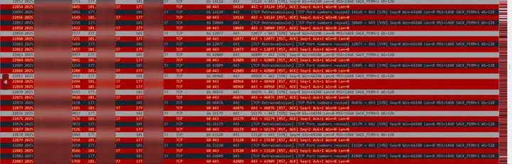 3、SSH暴力破解的连锁影响 从抓包结果可见,大量恶意IP(如177.xxx.xx.7、177.xxx.xx.250等)针对目标服务器22端口发起高频SSH连接尝试,服务器因认证失败持续返回[RST, ACK]报文,进而触发TCP重传机制。这种高频次“连接尝试-认证失败-重传”循环,与8080端口植入的恶意程序形成“双重资源占用”,最终导致服务器CPU跑满。