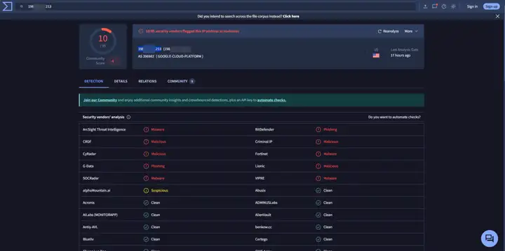 五、危险情报关联: 锁定攻击源头 通过网络危险情报库关联分析,获取关键信息: 1. 攻击IP情报:攻击源IP 198.xxx.xx.213被10家安全厂商标记为恶意,涉及恶意软件、钓鱼等多类风险,归属某境外攻击团伙,该团伙近期针对国内CRM系统、测试环境服务器发起“Web漏洞植入+SSH暴力破解”协同攻击,与本次事件手法完全吻合。 2. 恶意载荷情报:经匹配,本次植入的恶意程序疑似为PUA.Unix.Coinminer.XMRig-6683890-0,具备自动提权、隐藏进程、连接境外矿池、持续占用CPU资源等特征,与服务器CPU跑满现象完全匹配。