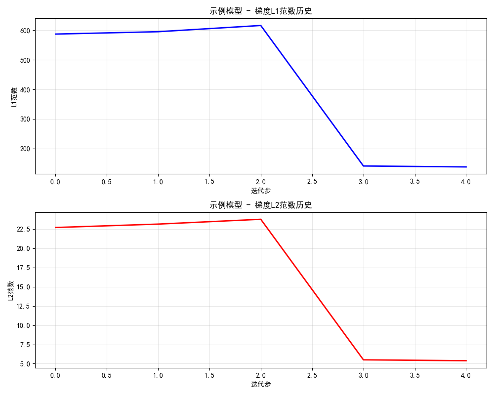 实际应用:L1 范数可作为训练过程健康的仪表盘指标。其实时监控能帮助开发者快速定位问题层,及时采取干预措施,例如调整学习率、检查梯度裁剪、增强正则化或验证数据输入,从而保障训练过程的稳定性和最终模型的鲁棒性。