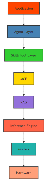 这个架构展示了2026年本地AI系统的完整技术栈,从应用层到底层硬件,每一层都有其特定的功能和组件。通过这种分层设计,我们可以构建一个灵活、可扩展的Personal AI System。