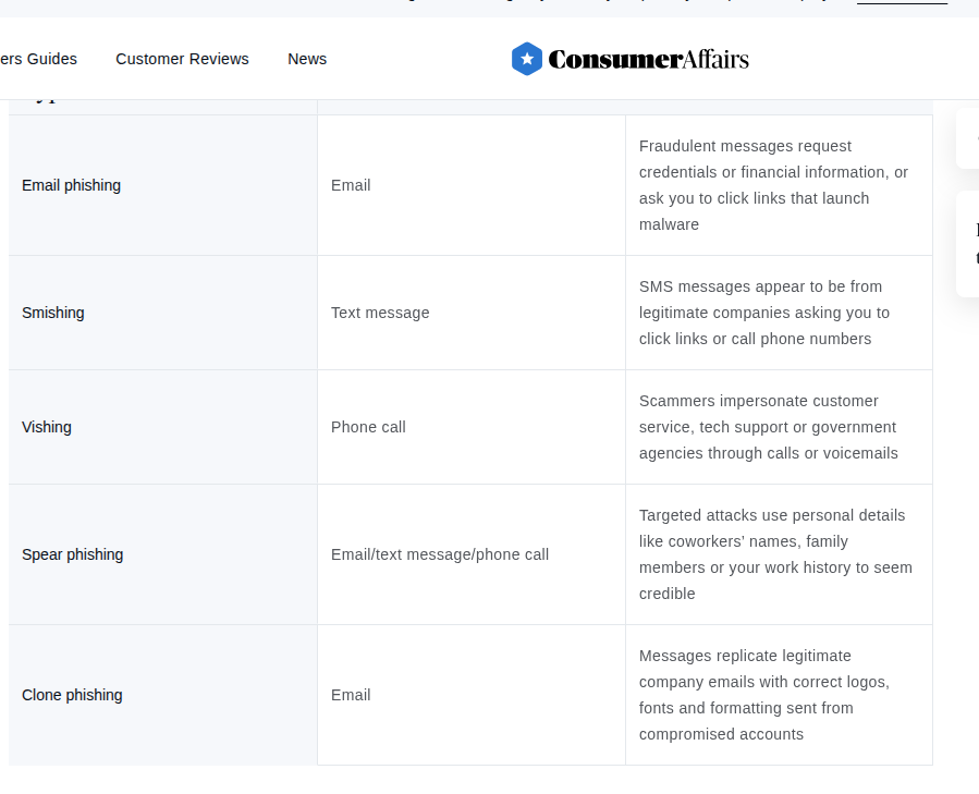 随着通信渠道的多元化,网络钓鱼已演变成一个庞大的攻击家族。根据Consumer Affairs的分类,当前主要的攻击方法包括五种类型,每种类型都有其独特的运作机制和针对性。