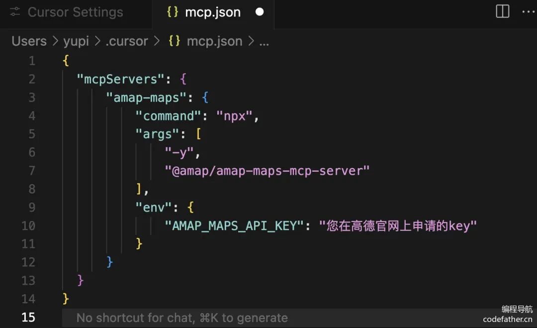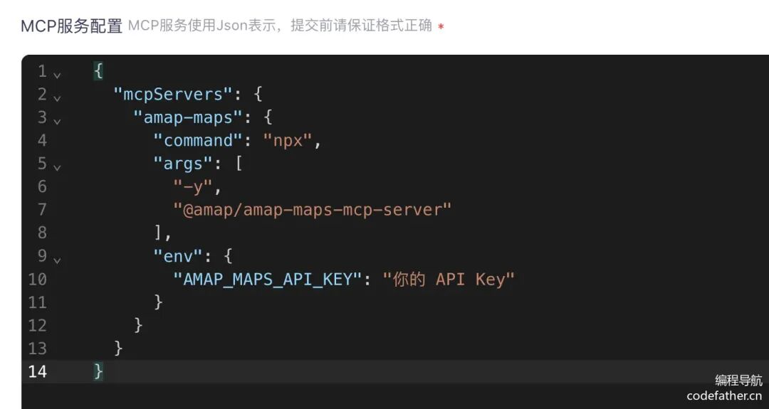 "AMAP_MAPS_API_KEY": "你的key"