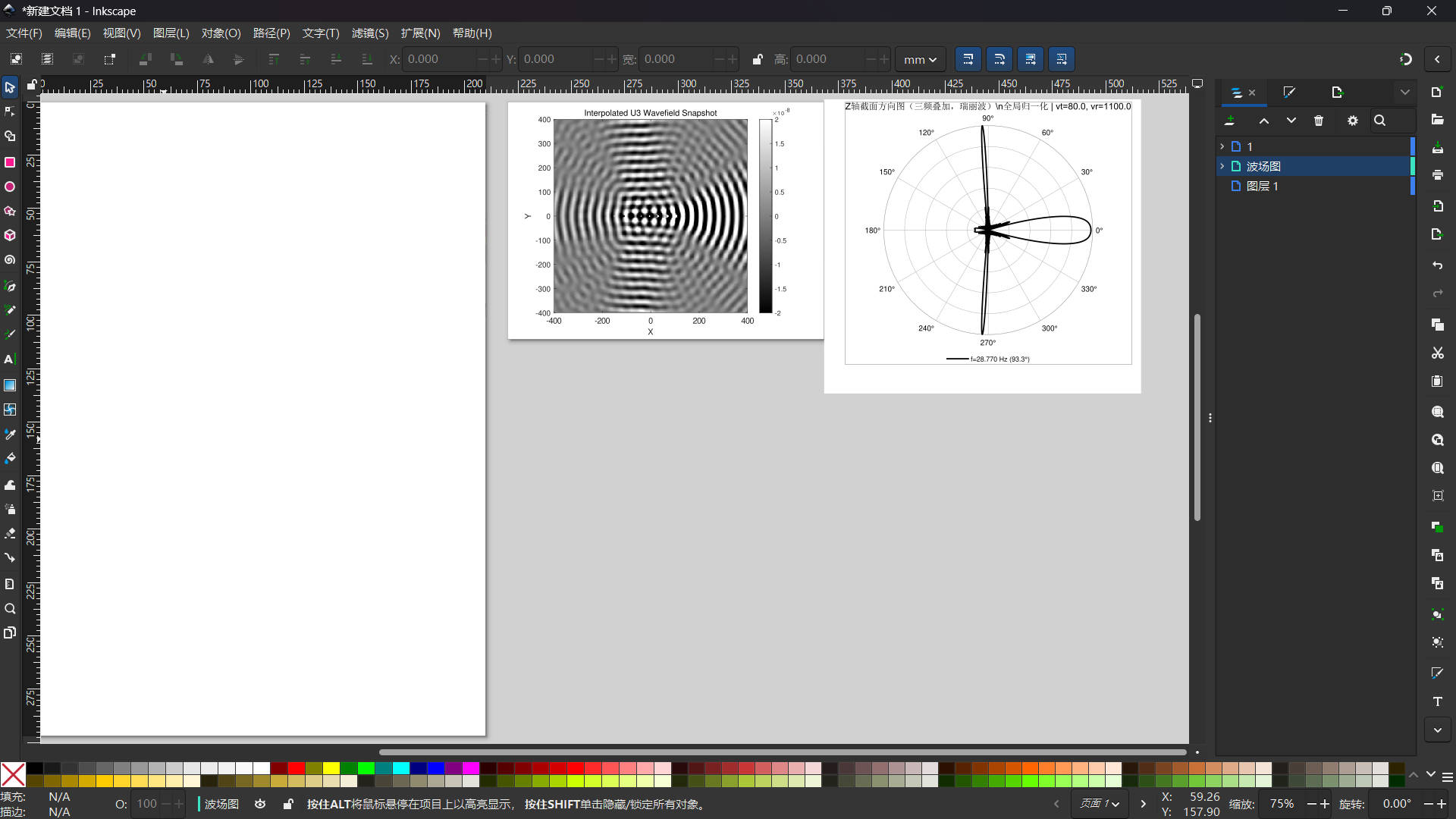 我们直接ctrlc一下,然后到我们的波场图中ctrlv(在右侧图层栏中点击波场图所在图层,也就是1,这里夜梦已经重命名成了”波场图“)。复制之后的波束可以自由拖动,对齐,缩放。