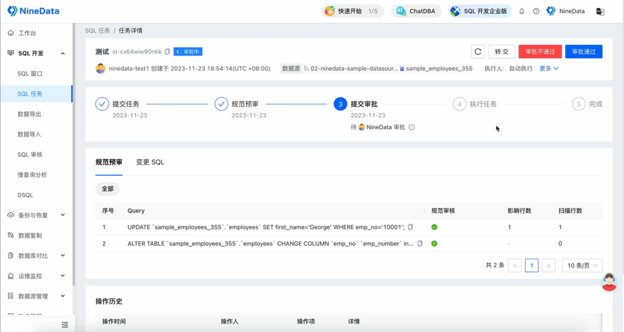 如果你正在被生产库变更风险、审批流程不规范等问题困扰,不妨试试 NineData,免费版就能满足基础审批需求,快速搭建起规范的变更流程。