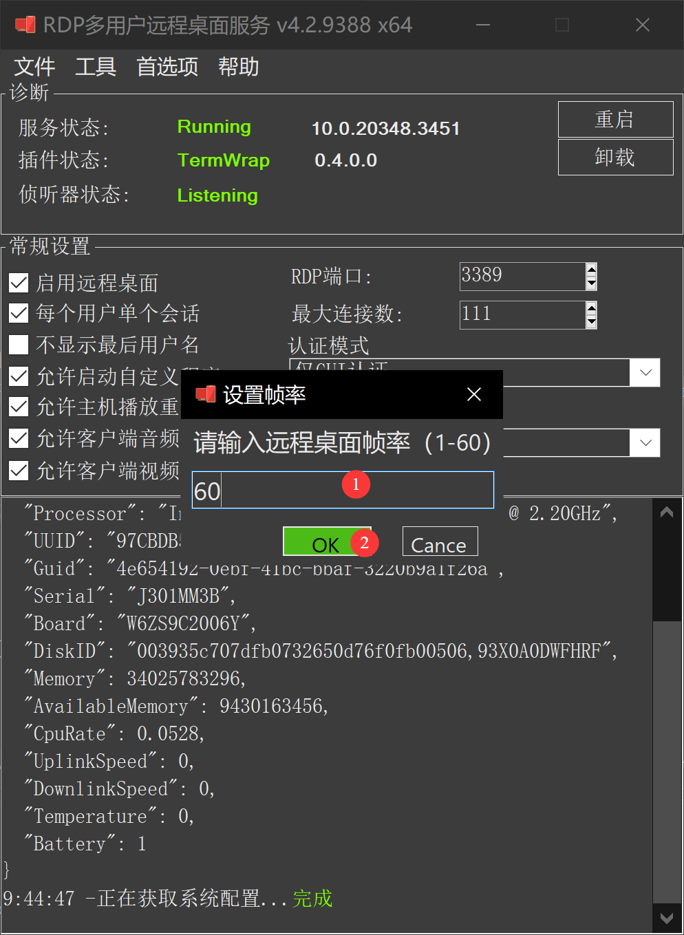 在远程主机上,通过修改注册表可以将默认帧率从30FPS提升至60FPS。